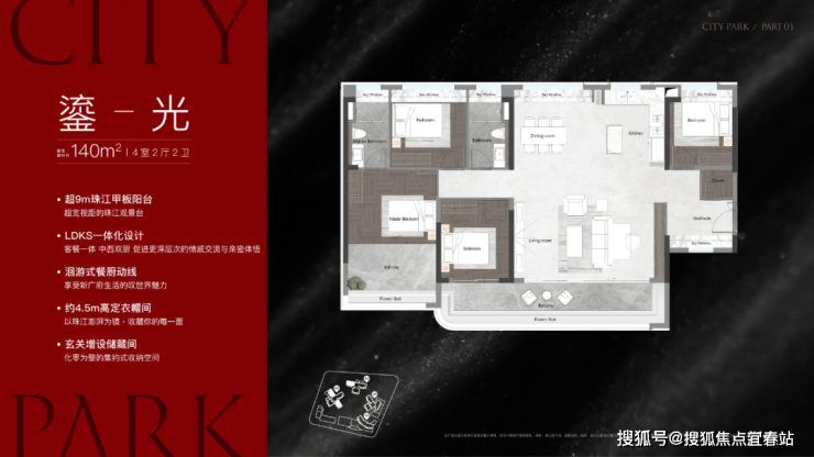 16-25F的层数,推售建筑面积约120平-140平四房产品,基本比较复合改善一族的需求。高楼层望江方便,户型方面的设计,动静分离、干湿分区,面积浪费少比较实用之类的,这个大多数都能做到,亮眼的地方是宽阔阳台的设置等,刚好可以迎合观江景的诉求吧。