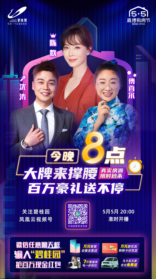 直播剧透先到这里,现场究竟如何?赶紧关注碧桂园凤凰云官方视频号,更多精彩在5月5日晚上20:00-22:00的直播里见吧。