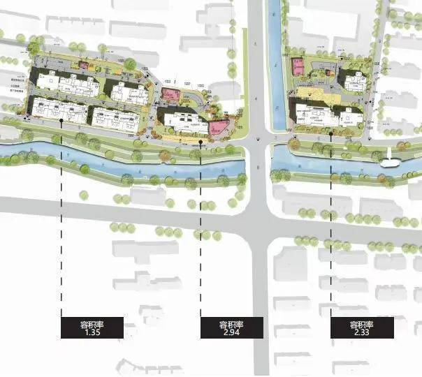 7幅地块的总地上计容面积超过8.3万平方米,包含了住宅套数超过620套,户型面积不大,产品类型却包罗万象,包含高层公寓、6层8层的洋房产品以及2-3层的合院及联排别墅,沿着走马塘一字排开,独有韵味。