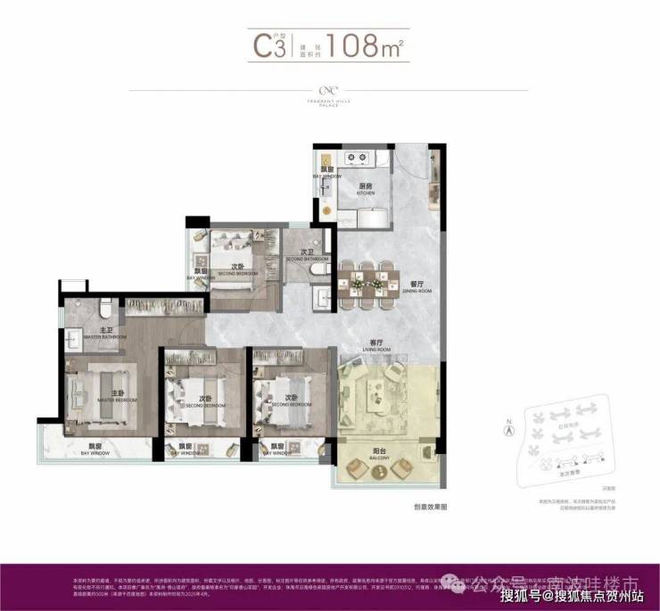 ▫建面约108㎡四房两厅两卫