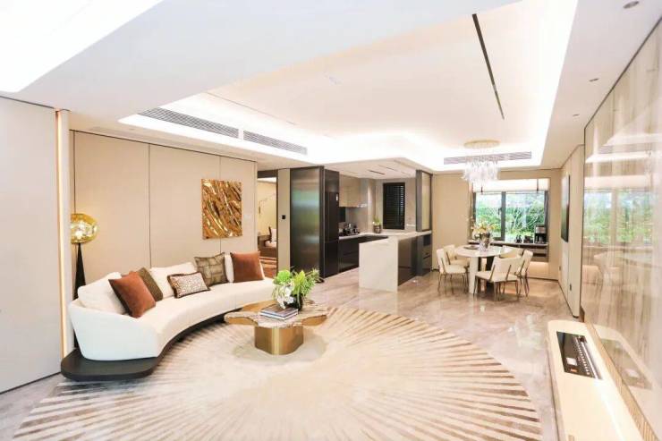 像目前这个建面约105平户型,整个餐厅的宽度升级到了约4.3米,客厅开间最大可做到约6.1米!光是整个餐客厅的面积就超30平,媲美市面上约150平+户型的客厅尺寸。 在开放的二期样板间里,公区更创意打造了“去客厅化”设计。