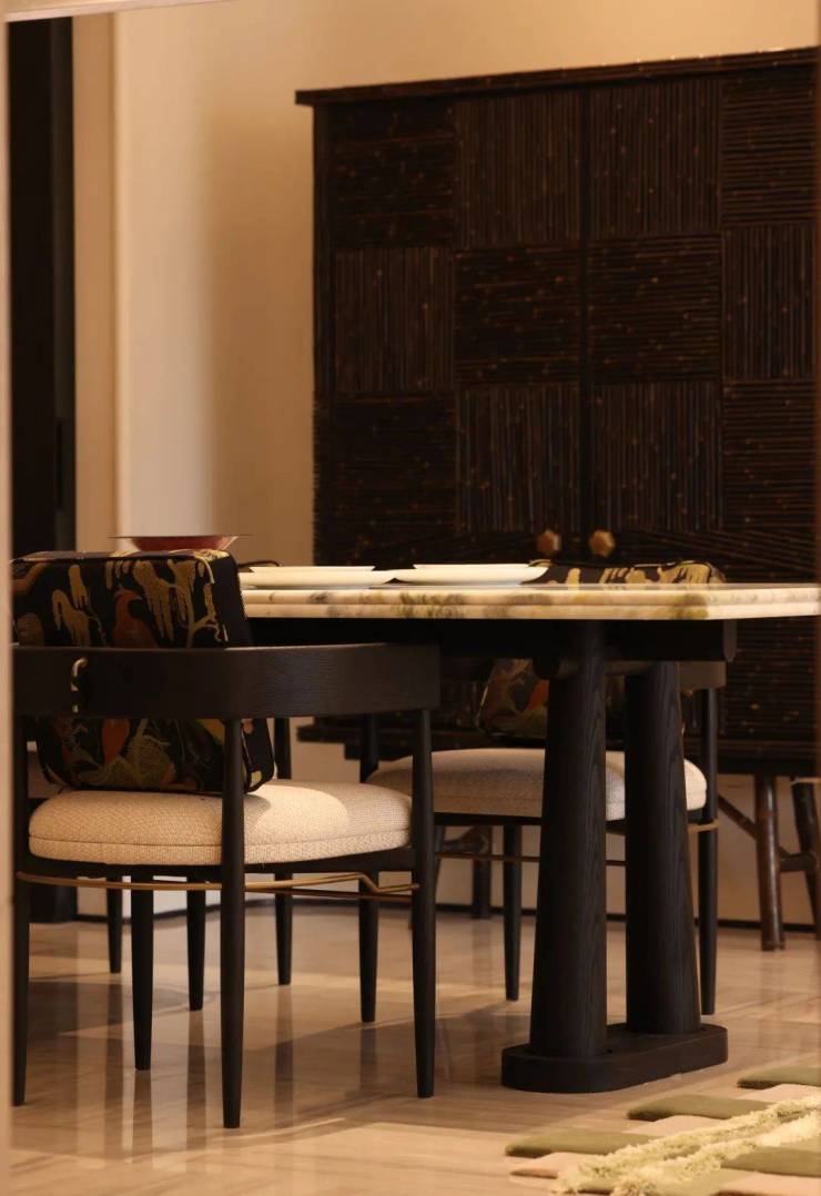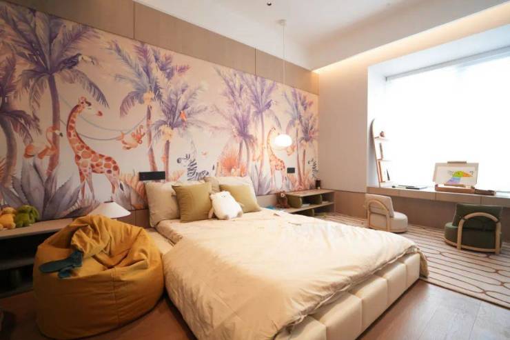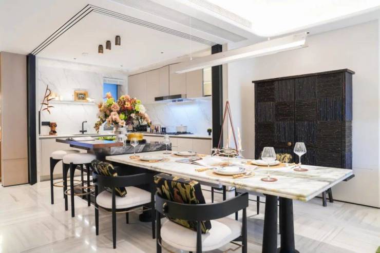 进门后即见独立艺术玄关,回家仪式感拉满;玄关南向专门设计有一处行李间,可以满足鞋柜、包柜、行李箱、自行车这种大型物件的专业收纳处理;此外,入户后去主卧,以及去客厅的动线,两条动线互不交叉;南向主卧套房还设计了双衣帽间,男女分区,女主衣帽间有中岛的收纳,充分满足“大男主”“大女主”的精致生活。
