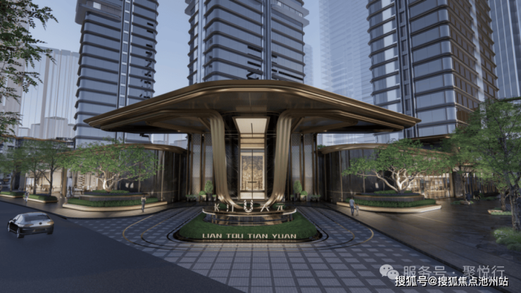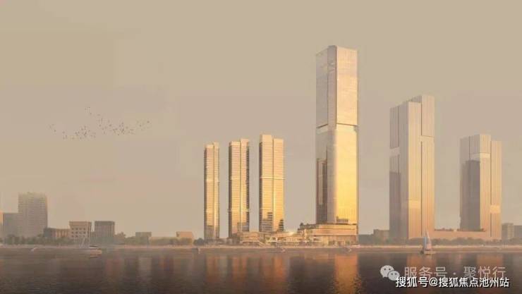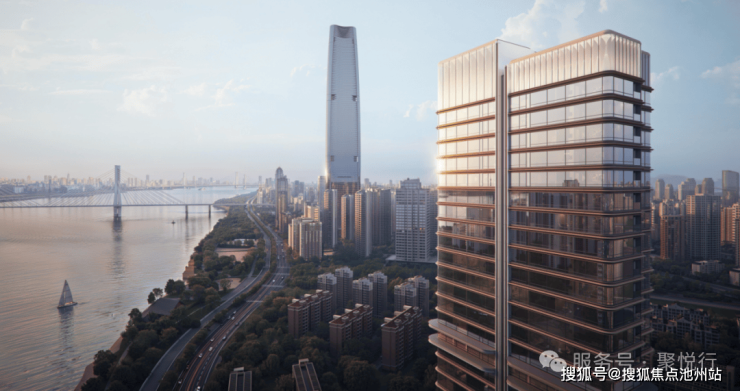 “直线属于人类,曲线属于上帝”。以“江水引向天空”流线型弧线,香槟色铝板、大玻璃面,呈现奢华美学的超流体建筑立面,谱写城市地标的奢华感受。
