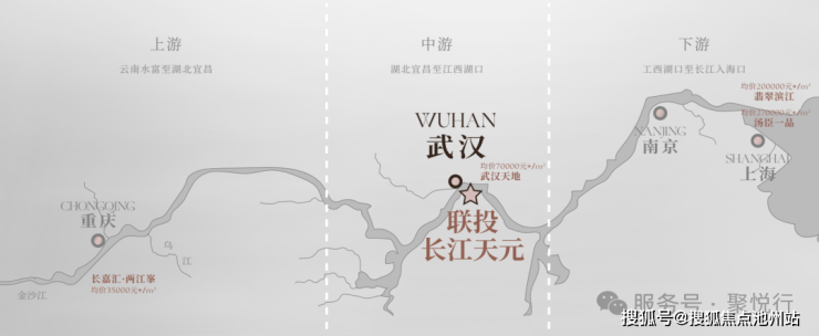 中国版图对折,中心是武汉,因此自古就有“群首武汉,中国天元”之称;武汉版图对折,中心是武昌内环滨江,因此武昌滨江是当之无愧的武汉天元;武昌滨江核心为长江大桥与二桥之间,此段版图对折,中心正是联投长江天元,因此联投长江天元位列中国天元正心之位,地段唯一无法复刻。