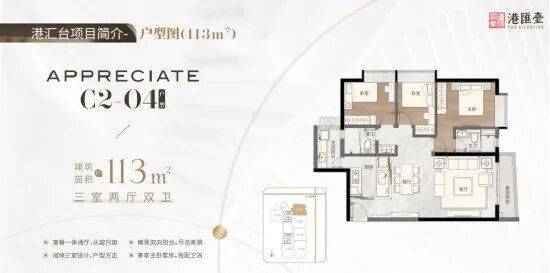 二期是商业、住宅、写字楼综合体,港汇台正是其中的住宅区,分C1、C2两栋,主推69-144㎡二房至四房,体量小,共162套。