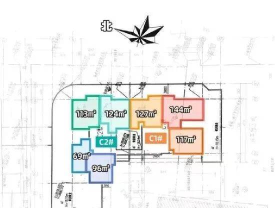 梯户比:C1栋2梯3户,C2栋2梯4户
