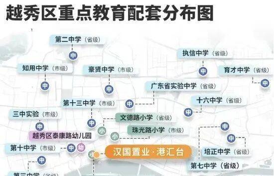 港汇台几百米开外就有江畔雅苑幼儿园、八旗二马路小学(对口)。3km范围内的教育也非常丰富,广州海印实验中学、第十中学、广州市第三中学、执信中学等都不远,不用焦虑孩子上学问题。