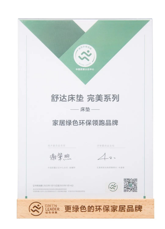 环保度优于新国标,舒达获得2022绿色环保领跑品牌两项认证