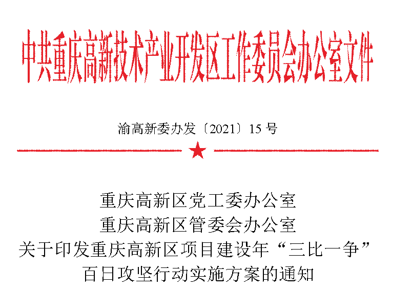 科学城建设正在迅猛推行。重庆高新区近日印发项目建设百日攻坚实施方案——比质量,比安全,比进度,掀起高新区工程建设领域比学赶超的热潮。此举既是献礼建党100周年,也是形势的紧迫。文件提到,唐良智市长指出,科学城建设再快也是慢,要求迈出新步伐、见到新气象。百日攻坚的时间是3月20日至6月30日。