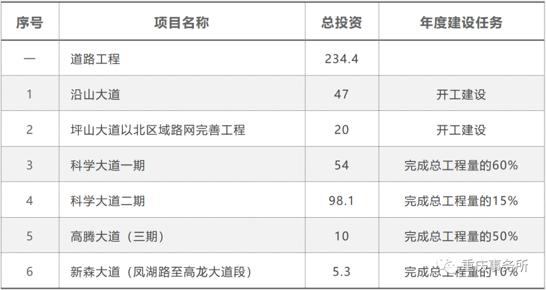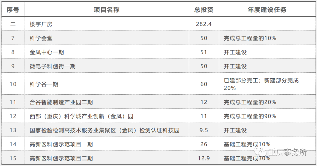 2021年,科学城建设项目力度和数量陡增。据高新区的统计,2021年,新区计划建设项目343个,其中政府主导类新续建项日232个,社会主导类项日11个;三年滚动计划项目111个。文件要求,政府投资项目,必须当好主力、冲锋在前,各单位要竭尽全力,6月底前启动开工77个,年底要实现新宏大道等26个交通项目通车。文件的措词非常热血,你们体会一下:新建项目要抓开工,坚持“能早则早”排好时序、挂图作战。在建项目要抓进度,坚持能快则快,攻坚克难、争分夺秒、抢抓进度。各参建单位要在确保质量安全前提下,优化管理团队,优化施工组织,强化人员配置,加大机械使用,运用先进工艺,做到作业面能开尽开,作业人员能上尽上,作业时间能长尽长,"一年干成两年活",较大限度节约工期。实现工程建设综合效益较大化,加快形成塔吊林立、热火朝天的建设局面,让市委市政府和全市人民看到科学城新变化新进展。建设战线全体干部职工要发扬亮剑精神,以打赢、战胜、干成为荣,以一般、将就、凑合为耻。两江新区在基础设施建设阶段也推行过几次百日会战,一些团队获得了“骏马奖”、“猛虎奖”等称号。事实也证明,这一举措相当有效。两江新区管委会一位官员曾经总结,新区成立一年以来,用“山河重塑”,“产业重建”,“社会重组”来概括,一点也不夸张。就当前的形势来说,不少城市都在建设科学城,争取重大科创资源的落地,重庆必须迅速搭建好平台,才不至于在这个赛道上落后。