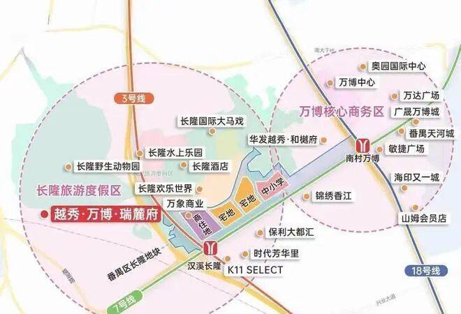 从地理位置看,离万博还是有点远的,本身汉溪大道也比较长,周边开发也差不多,和樾府、长隆悦府一二期以及欢乐世界动物园占的地方都挺大的,这种低密度的改善大盘是近十年万博板块唯一的一个。