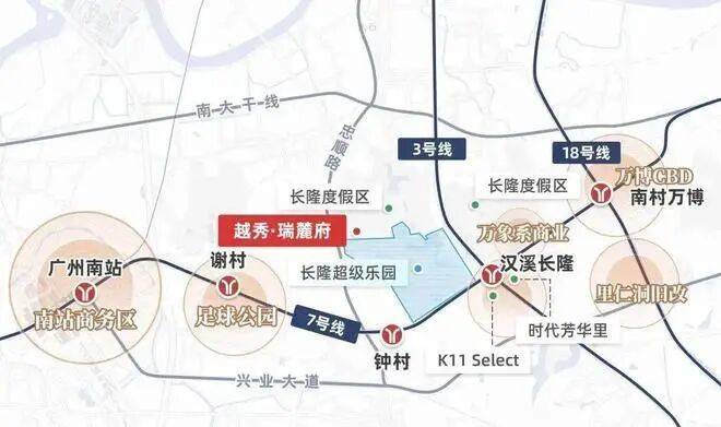 越秀·瑞麓府的位置十分优越,紧挨长隆动物世界的西南侧,西侧靠近钟顺路,距离万博CBD大概5公里左右,开车仅需10分钟左右即可抵达。万博商务区经过扩容,规模已赶超珠江新城,这里汇聚了顶级商业和文旅资源,如万达广场、广晟万博城等,为居民提供了丰富多样的生活和娱乐选择。