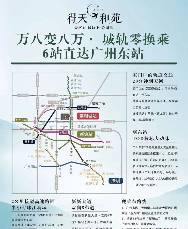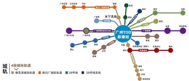七轨交汇+穗莞深城际轻轨+广州东部交通枢纽。