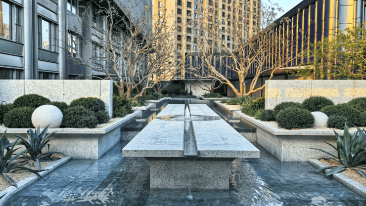 地面上还有可游玩、具有参与感的水景,比如森感公园有一个休闲戏水景观,彷佛走到欧洲罗马的大广场一样,气场十足。