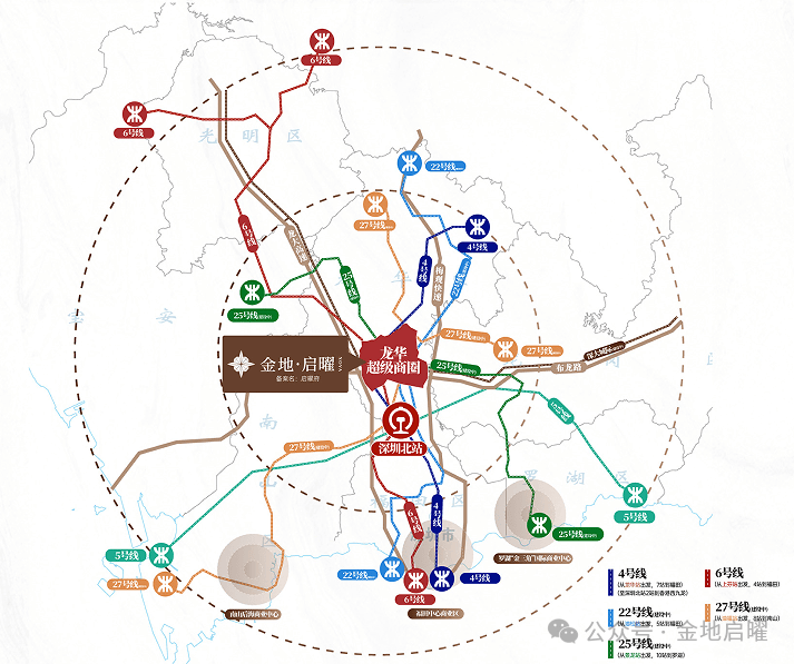立体交通网络:周边汇聚4号线、6号线(已运营),以及规划中的22/25/27号线及深大城际,形成“六线七站”布局,便捷通达全城。
