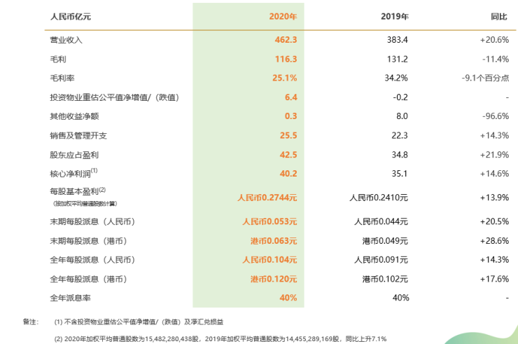 对比2020年不少中小房企的暴雷年,越秀地产2020年的成绩单向阳指标远高于下降指标,可以看出其对冲风险的稳定性。只是,在行业整体趋势下滑之际,2020年越秀地产毛利率为25.1%,比2019年同比减少了9.1个百分点。