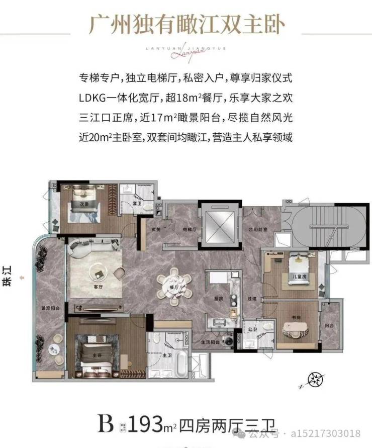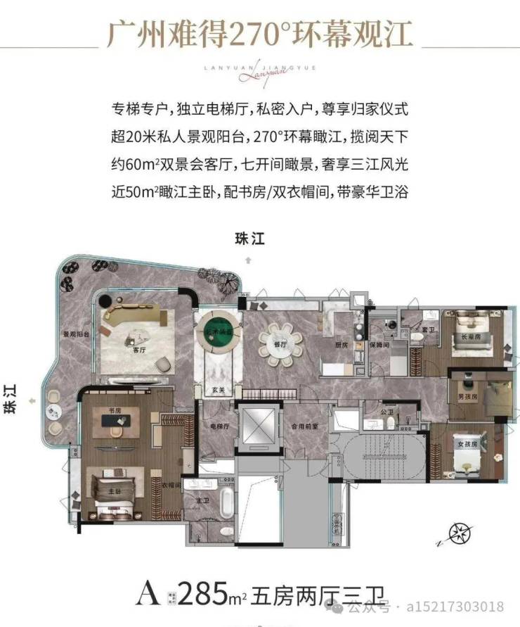 体量不大,项目只规划了一栋楼,18层高,全盘只有68套,而且只做了两种户型:193㎡和285㎡江景大平层。