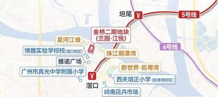 项目位置就在5号线滘口站附近,距离地铁口约1公里,项目一墙之隔,就是星河江缦及二手豪宅珠江鹅潭湾,不管是地铁出行还是自驾出行都十分便利。旁边规划的广佛同心桥,可直通佛山地区;白鹅潭大道未来也可通往广船和医药港等地。