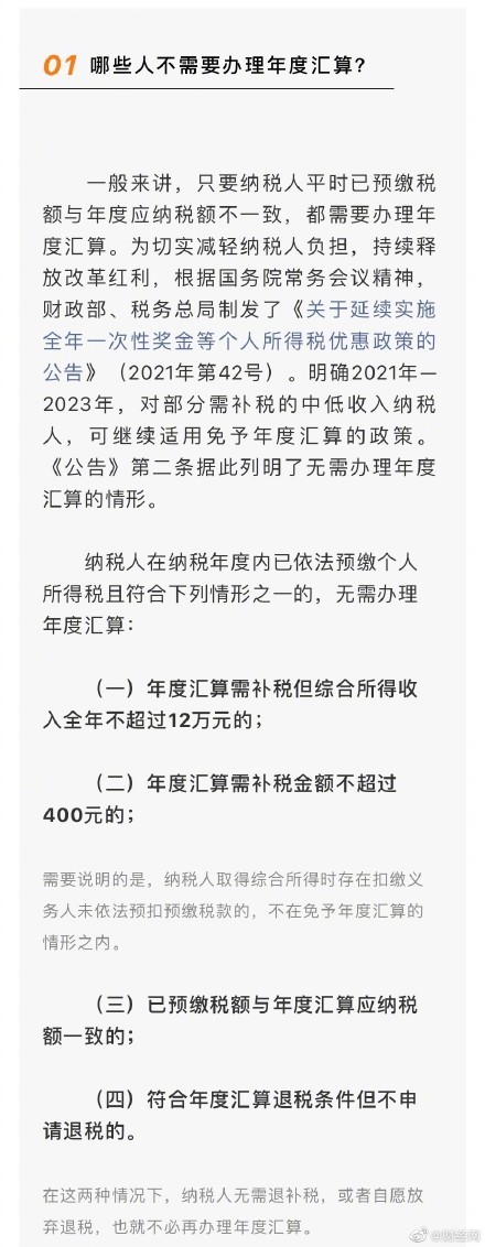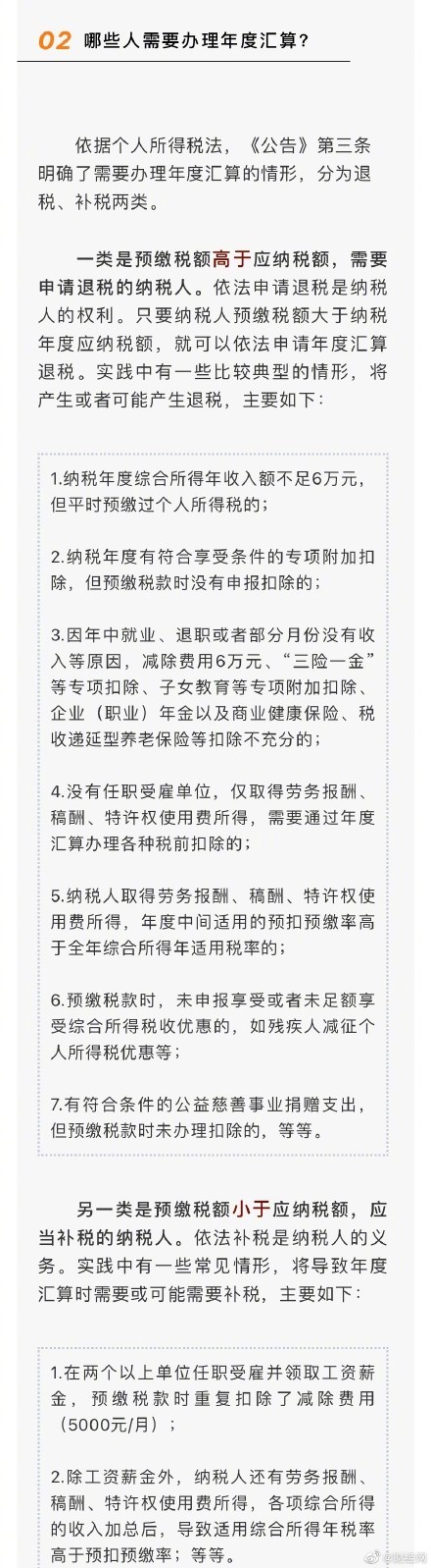 据国家税务总局,自2022年3月1日起办理2021年度个人所得税综合所得汇算清缴。什么人需办理个税年度汇算?个税年度汇算清缴“多退少补”是怎么算的?