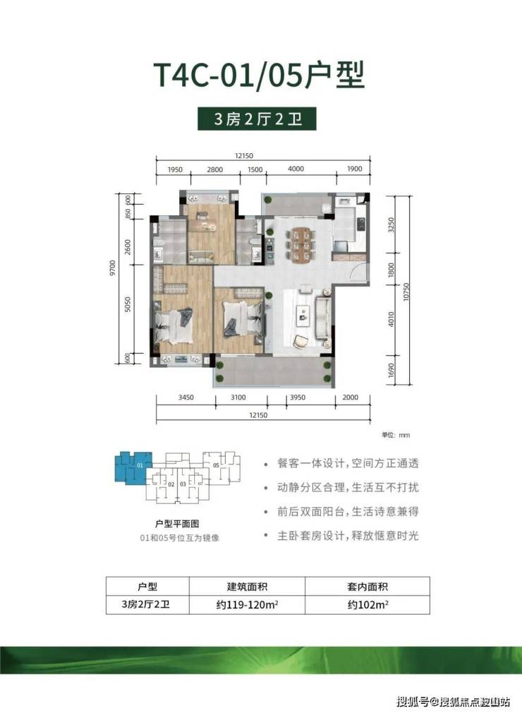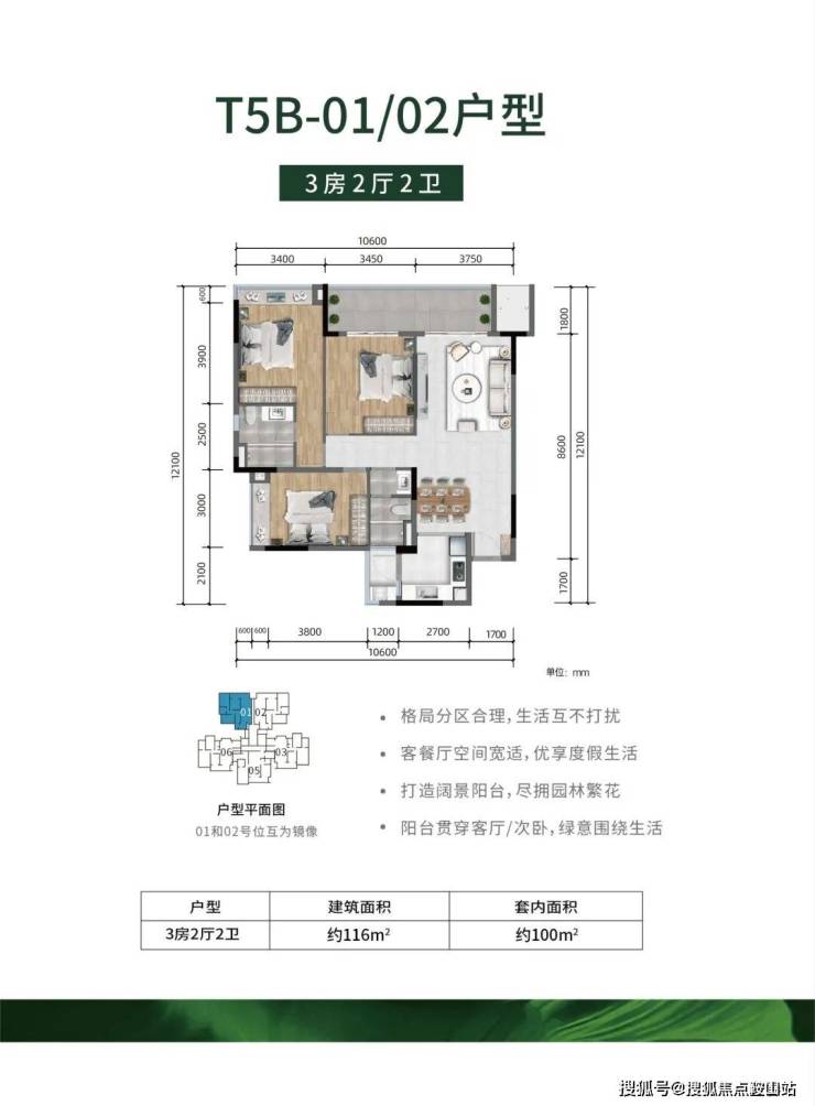 -全明户型,方正实用、公摊低,大主卧、超大景观阳台设计