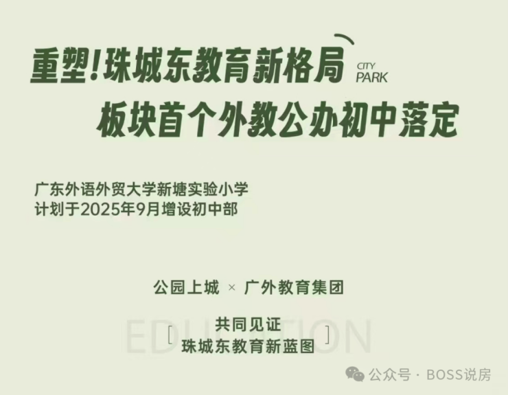 中学:2025 年 3 月官宣扩建初中部,拟引入广外附中与现有广外附小形成九年一贯制教育体系;