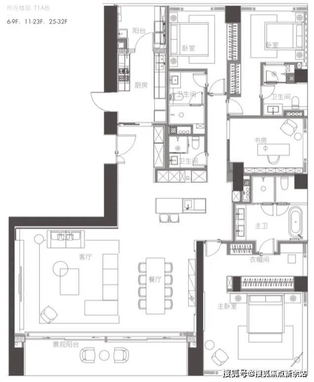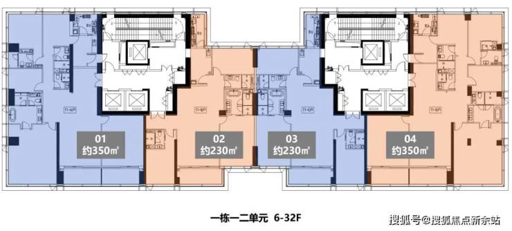 04户型 东端户 约350㎡ 四房两厅四卫(01、04镜像对称)