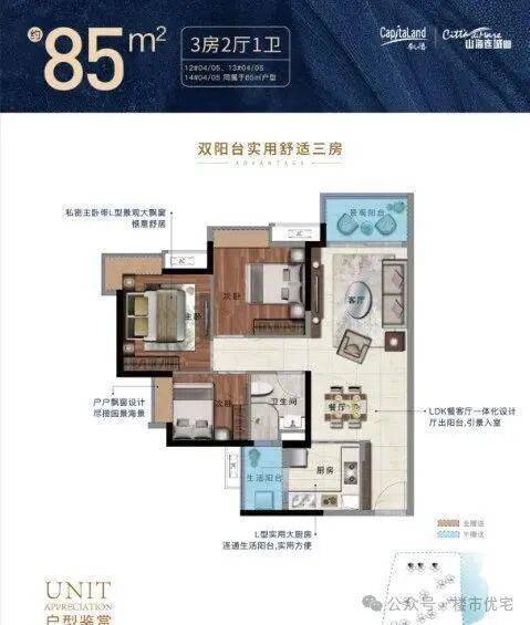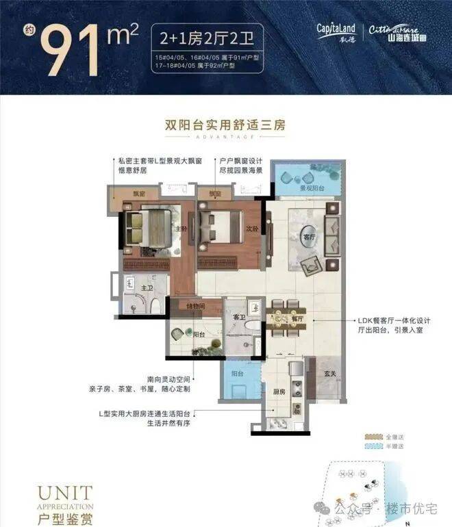 海景与园林:40 米近海,1.5 公里海岸线,一线狮子洋海景。项目打造约 16 万㎡新加坡式滨海轻奢艺术园林,已开放,社区内规划有园林泳池、室内羽毛球篮球馆、健身室、儿童活动区等。户型图