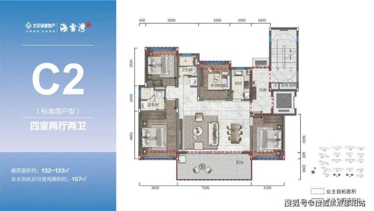 105-120㎡三房、132㎡四房