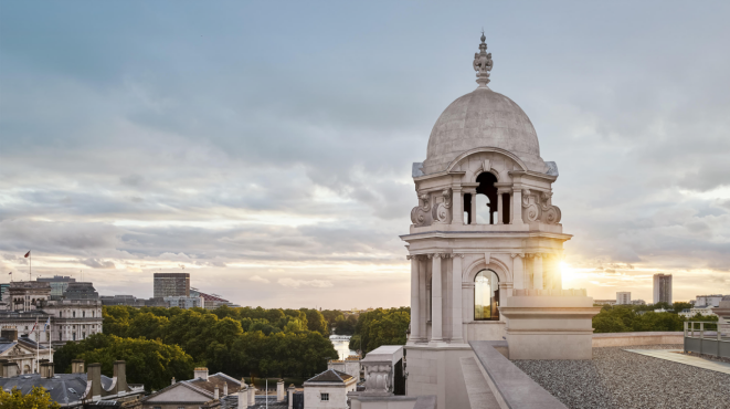 始建于1906年的旧战争办公室位于伦敦历史最为悠久及具影响力的地段之一,由英国建筑师William Young设计打造。这座伦敦地标建筑原是白厅宫的所在地,曾是亨利八世及多位君主的住所;在丘吉尔和大卫·劳合·乔治(David Lloyd George)等有影响力的政治和军事领导人在任期间,见证了众多高级盛事。此处也是约翰·普罗富莫(John Profumo)担任国务大臣时的基地。The OWO还启发了时任英国海军情报局的伊恩·弗莱明(Ian Fleming),创作了举世闻名的007詹姆斯·邦德(James Bond)系列;近期还出现在大热英剧《王冠》中。