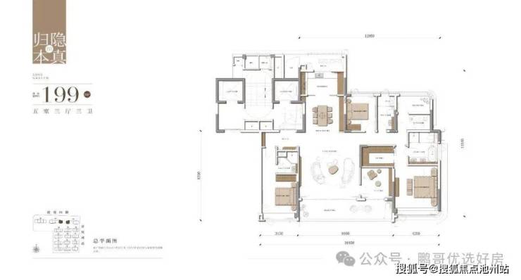 四叶草or方正布局:169㎡和199㎡的户型做成宽敞的四房或五房,实现“四室朝南”或“三室朝南+横厅”的布局,保证每个家庭成员都有充足的采光和独立空间。