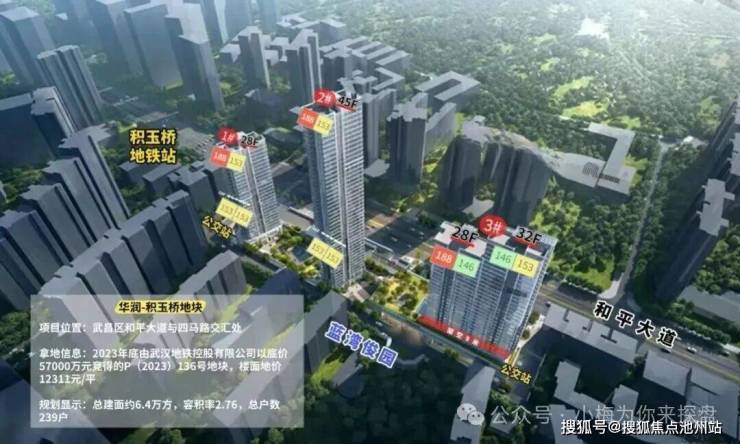 位于武昌区和平大道与四马路交汇处,地处武昌内环积玉桥板块核心位置,项目由武汉地铁集团与华润置地合作开发,华润占股51%并主导操盘,总建筑面积约6.4万方,容积率2.76,规划3栋住宅共239户,户均面积约156㎡,定位为纯改善社区。