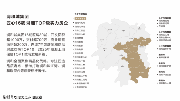 升维精品化 土储TOP1:累计开发超1000万方,100%准时交付,凭借安全稳健的财务状况,迭代升级4.0产品,2025年,润和城集团土地储备位列长沙首位。