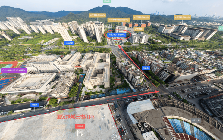 市政公园:广州体育馆、广州市儿童公园、白云国际会议中心,满足运动、亲子游玩、大型活动参与需求。