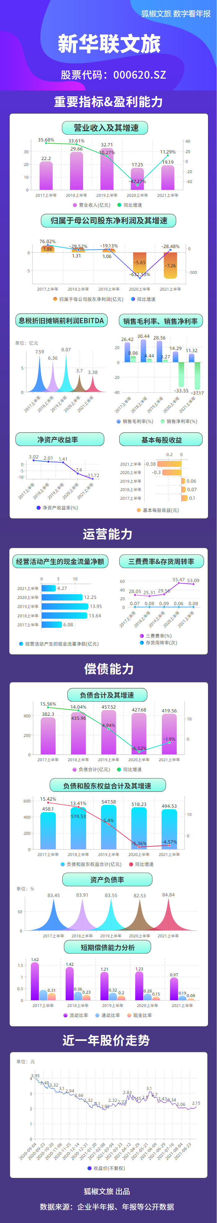 8月18日,新华联文化旅游发展股份有限公司(股票代码:000620.SZ)发布2021年上半年业绩报告。本报告期内,新华联营收19.19亿元,同比增长11.29%;归属于上市公司股东的净利润亏损约7.26亿元,同比下滑28.48%;经营活动产生的现金流量净额约为4.27亿元,同比下降65.16%;扣除非经常性损益的净利润亏损约7.48亿元,同比减少22.10%。