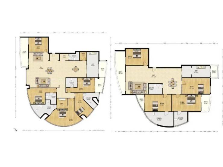 户型迁就江景后,变得奇形怪状,毫无规整方正可言。椭圆形的上下两端户型就像一个猴子屁股,为了欣赏江景特意将浴室墙边建成硕大的透明玻璃,实为招外桃花的户型。