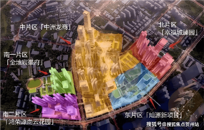 龙华商业中心城市更新单元整体除了北【幸福城臻园】外,还有中【中洲龙商】、东【灿源新】、南一【金地宸峯府】、南二【鸿荣源尚云花园】五个片区,各个片区均整体实施。