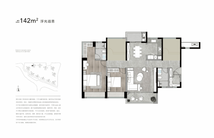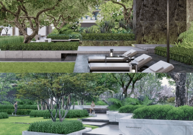 延续湿地自然元素,“山/林/水/谷/岛”尽纳于一方园林,约800m滨水跑道、约500m森境步道、花园球场、三重花园式会客厅、溪谷儿童花园,营造全龄森氧能量场。