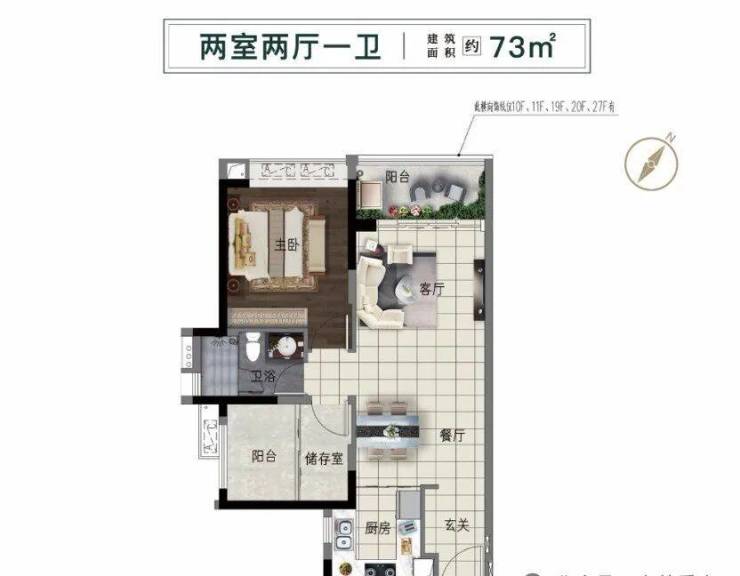 建面约73㎡的江景两室,是目前项目最受欢迎的户型,也是适合刚需客群的选择。