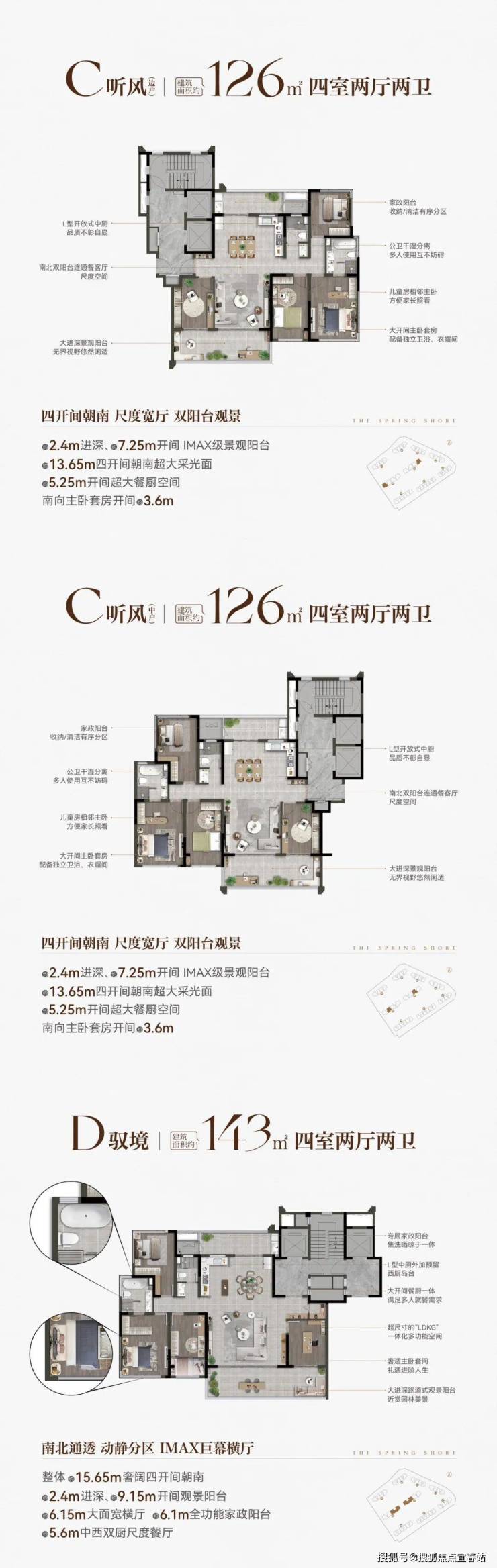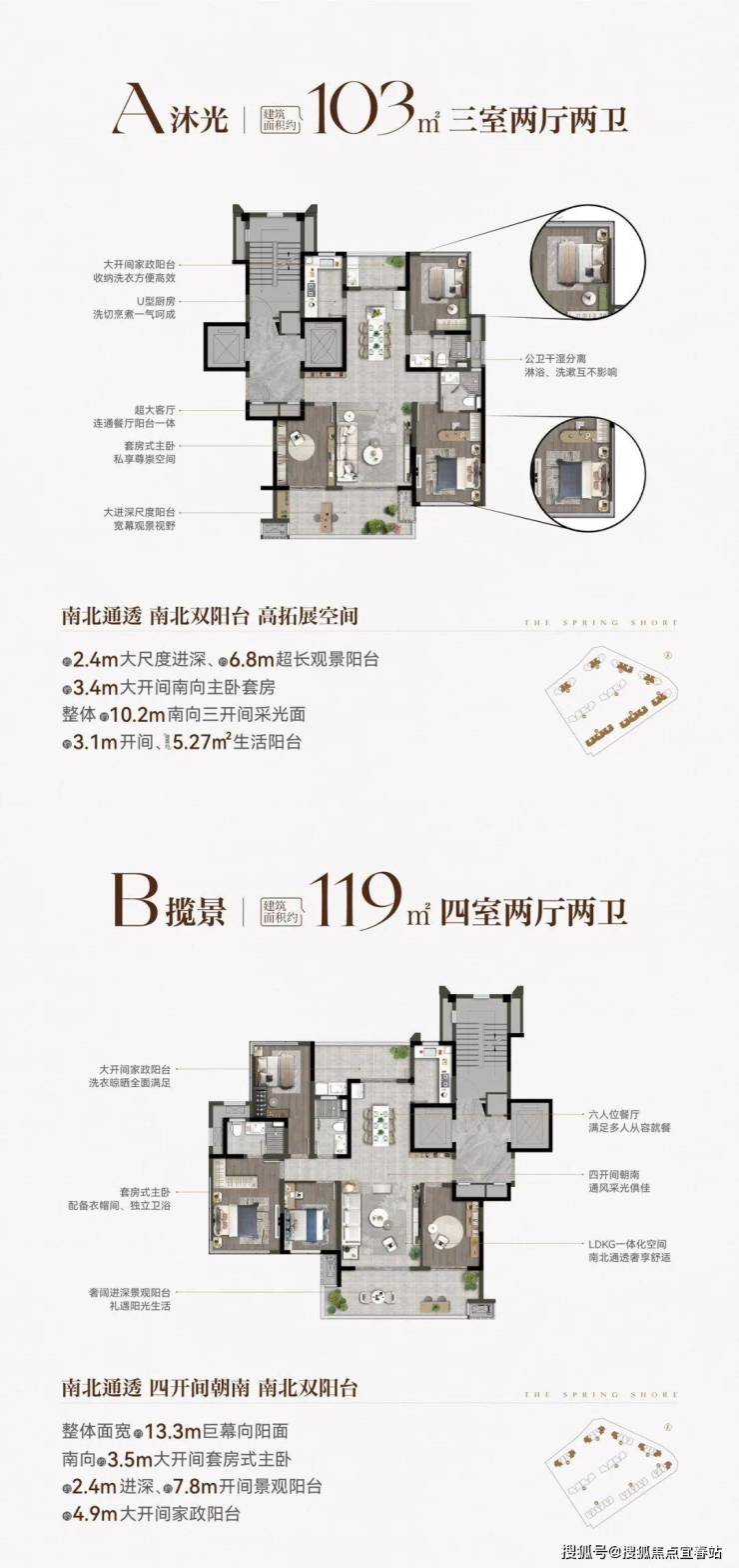 项目规划建筑面积约103-238㎡改善户型,层高最高约3.05m,南北通透、双景观阳台、南向多面宽,于一方宽境里,满足对阔绰空间与舒适格局的拥享。