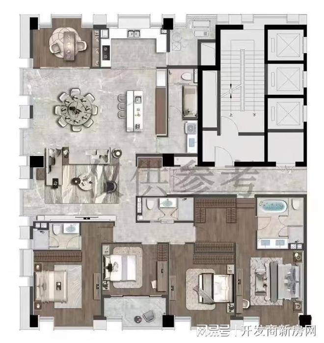 【户型】:4+1户型,5房4卫南北通透
