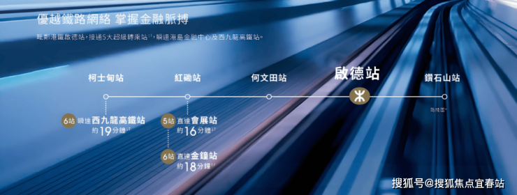 项目20分钟内掌握香港三大核心商业区及西九龙项目,距离港铁沙中线启德站约10分钟步程,步行至港铁彩虹站则约16至20分钟。经「中九龙干线」(兴建中)横跨东西九龙只需约5分钟,配合半小时跨境圈优势,吸引世界专才进驻。