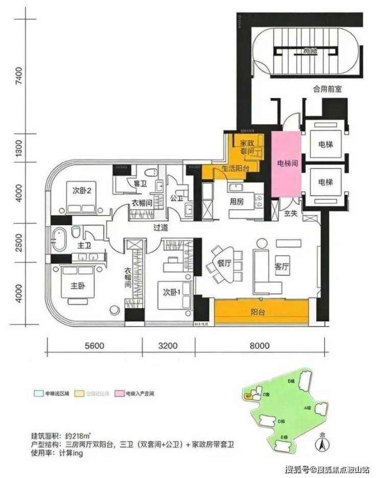 项目摒弃小户型设计,全系规划211-512㎡环幕海景大宅,涵盖211-218㎡、302㎡、370㎡、512㎡等多个面积段,天然筛选企业主、金融高管、行业精英等塔尖人群,居住圈层纯粹度拉满。户型设计极具亮点,首层住宅距地约20米高,实现户户观海;270°景观阳台+客厅转角无柱设计+巨幕全景落地玻璃,最大化拓展观景视野;建筑整体东转南约8°,纵览深港海岸开阔视野;全系多套房设计,层高3.3-3.6米,营造开阔通透的居住感受。梯户比按户型分级配置:210㎡户型4梯3户、302-305㎡户型3梯2户、370㎡户型5梯2户、510㎡户型3梯1户,保障极致私密与出行效率。