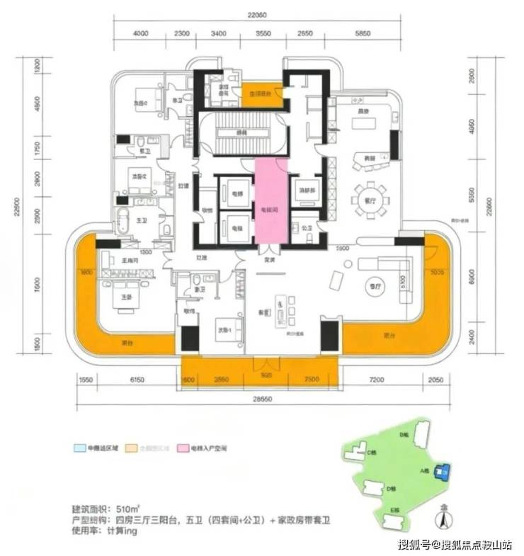 核心参数:3梯2户设计,私属电梯前厅;奢阔横厅布局,客餐厅空间开阔;270°环幕海景视野,推窗即览深圳湾一线海景;多套房设计,保障家人居住私密性;3.3米奢阔层高,全明通透;高定精装交付,适配二孩或三代同堂顶豪家庭需求。总价区间5326-8051万(均价20.79万/㎡),该户型所在的E栋整栋房源开盘即售罄,足见市场认可度。
