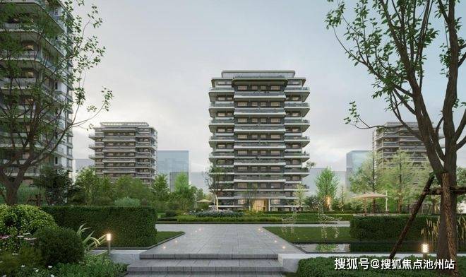 项目规划布置20栋高层住宅,层数在12F-17F之间。楼宇采用错位布局的方式,形成"城市森林岛屿"的视觉效果;在地块内部围合1000㎡下沉庭院花园,同时融入苏州园林造景手法,形成户户享有立体庭院景观,实现"推窗见绿"的生活体验。