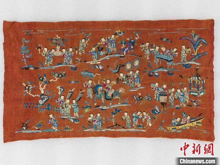 走进展厅,金银玉器、刺绣挑花、陶瓷木雕等展品琳琅满目,光彩耀眼。每一件展品富含浓郁的地域特色,从质地、色泽到纹饰、形态,都诉说着湖湘本土吉祥艺术的深厚内涵,唤醒观众关于传统文化的日常记忆。如清代红绸绣“麒麟送子”门檐上,骑麒麟的孩童头戴官帽,右手举笙、左手执桂。因“笙”与“生”“桂”与“贵”谐音,寄寓了民众祈求早生贵子、子孙贤德的心愿。