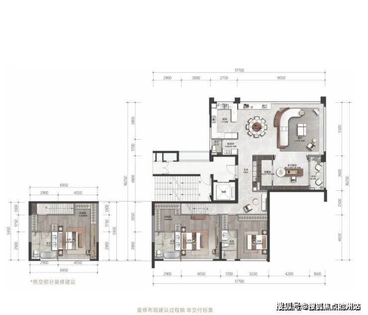 【无界江境】270°环幕厅及双主卧套,头排瓯江盛境,横瞰天幕江景【世家厅堂】约100mLDK环幕巨厅,承载家族待客礼序