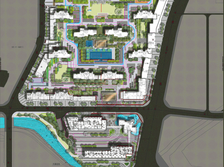 项目将为片区打造约40万方亲水滨河商业带,成为与水岸相融合的生活美学综合体。
