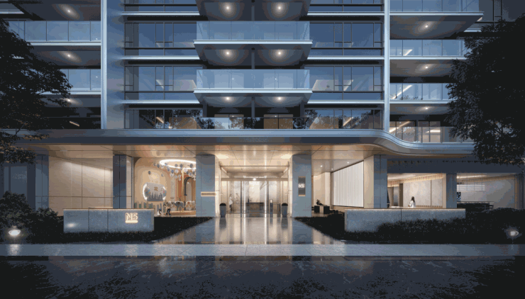 例如,项目所打造的流光天幕美感的外立面,由弧形线条结合功能节点,搭配大面积双层中空LOW-E玻璃组成,整体晶莹剔透、高档典雅,辨识度很高。