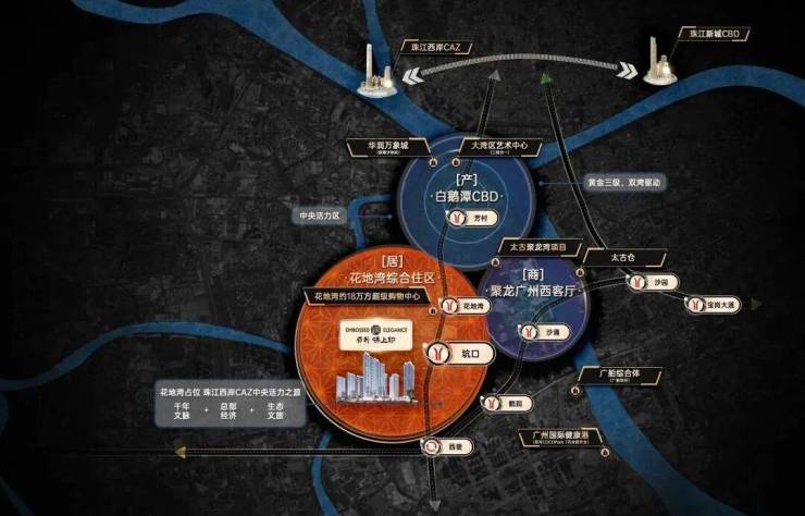 从地缘关系来看,东漖资产包占据广州西翼黄金三极的花地湾组团核心,与白鹅潭核心区、聚龙组团同频共振,是片区发展的关键力量。