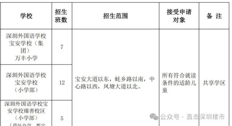 根据宝安区教育局2025年的学区划分,项目学区为深圳外国语学校(集团)宝安学校